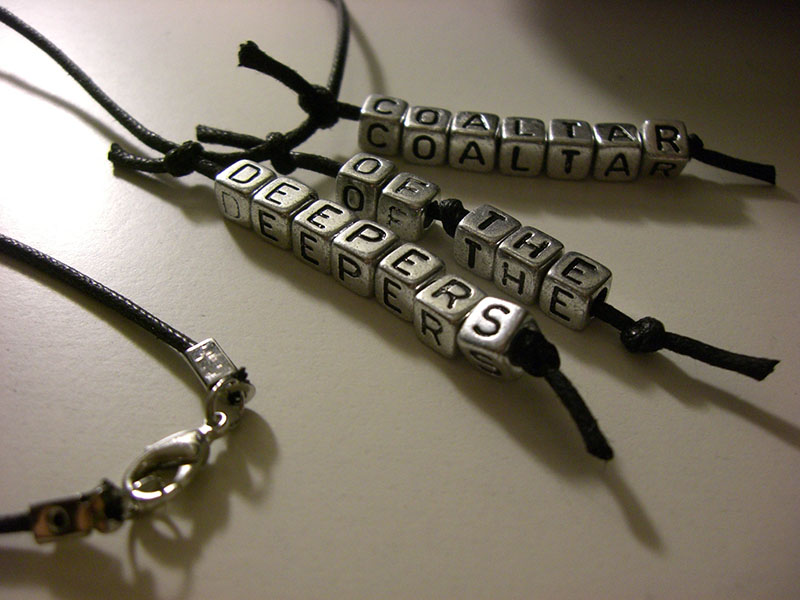 The contest submissions were printed into a COTD Fan Book and were mailed to MUSIC MINE as a birthday present for NARASAKI. Fan shout outs and data of number of fans around the world were also included in the book. Unfortunately, the photos I had of the fan book are lost because at the time, my computer died. However, I have one photo saved of one of the items that was included- a COALTAR OF THE DEEPERS necklace that I made.